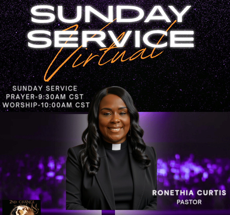 Sunday Service: Prayer Service: 9:30am CST/10:30am EST Worship Service:10:00am CST/11:00amEST Zoom Meeting ID: 286 568 8033